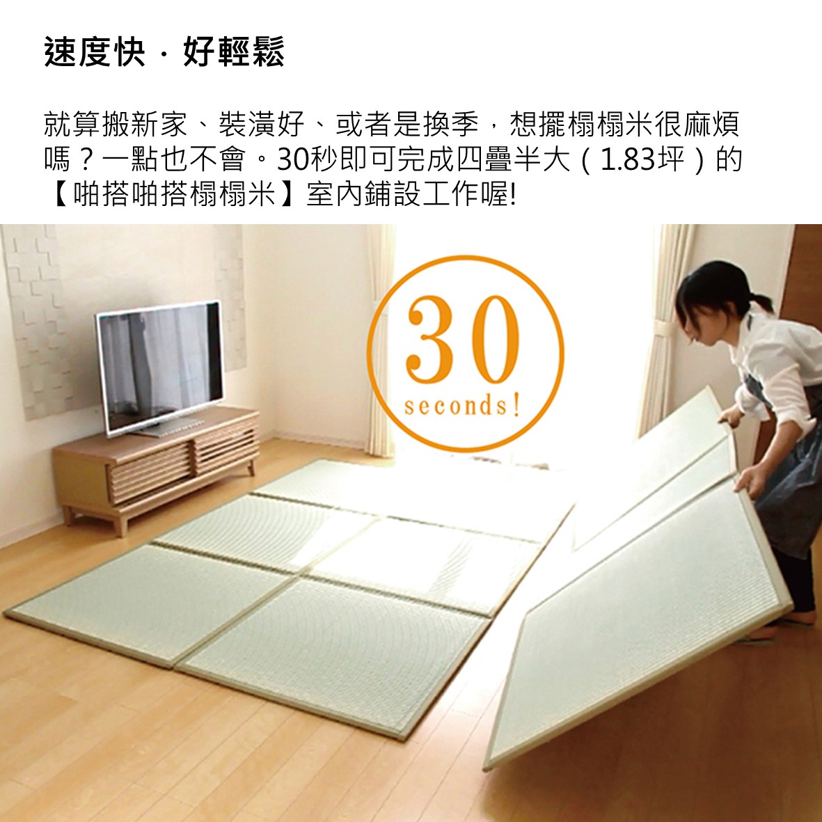 30秒可完成大面積鋪設的頂級室內居家榻榻米,瞬間享受純正和室